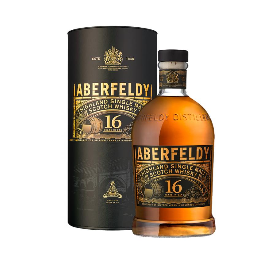 ZONA PRODUTTIVAHighlands MATERIA PRIMAOrzo, acqua, lievito DISTILLAZIONEDoppia distillazione in alambicchi in rame Pot Still COLOREOro intenso con riflessi bronzei PROFUMOAl naso le note speziate e di frutta matura si uniscono a quelle di ananas, vaniglia e caramello. SAPOREIl sorso è perfettamente equilibrato, con ricordi di miele, agrumi e chiodi di garofano, con il cioccolato fondente sullo sfondo. Il finale è complesso, con una leggerissima nota affumicata. NOTEAberfeldy è una distilleria tra le più famose del Perthshire e i suoi Single Malt sono apprezzatissimi da appassionati e addetti ai lavori. Fondata nel 1897 e operativa dal 1898, vede al comando i figli di John Dewar, un personaggio fondamentale nella storia del Whisky di Scozia. Da sempre i prodotti di Aberfeldy vengono utilizzati per la produzione dei Blended del gruppo Dewar ma dall’inizio del nuovo millennio la distilleria ha iniziato a imbottigliare i suoi Single Malt, creando negli anni la sua gamma di Whisky. INVECCHIAMENTOInvecchiamento di 16 anni in botti di quercia First Fill di Bourbon, in botti Refill di Aberfeldy e Re-char (ringiovanite attraverso una nuova tostatura). Affinamento di 6 mesi in botti First Fill di Sherry.