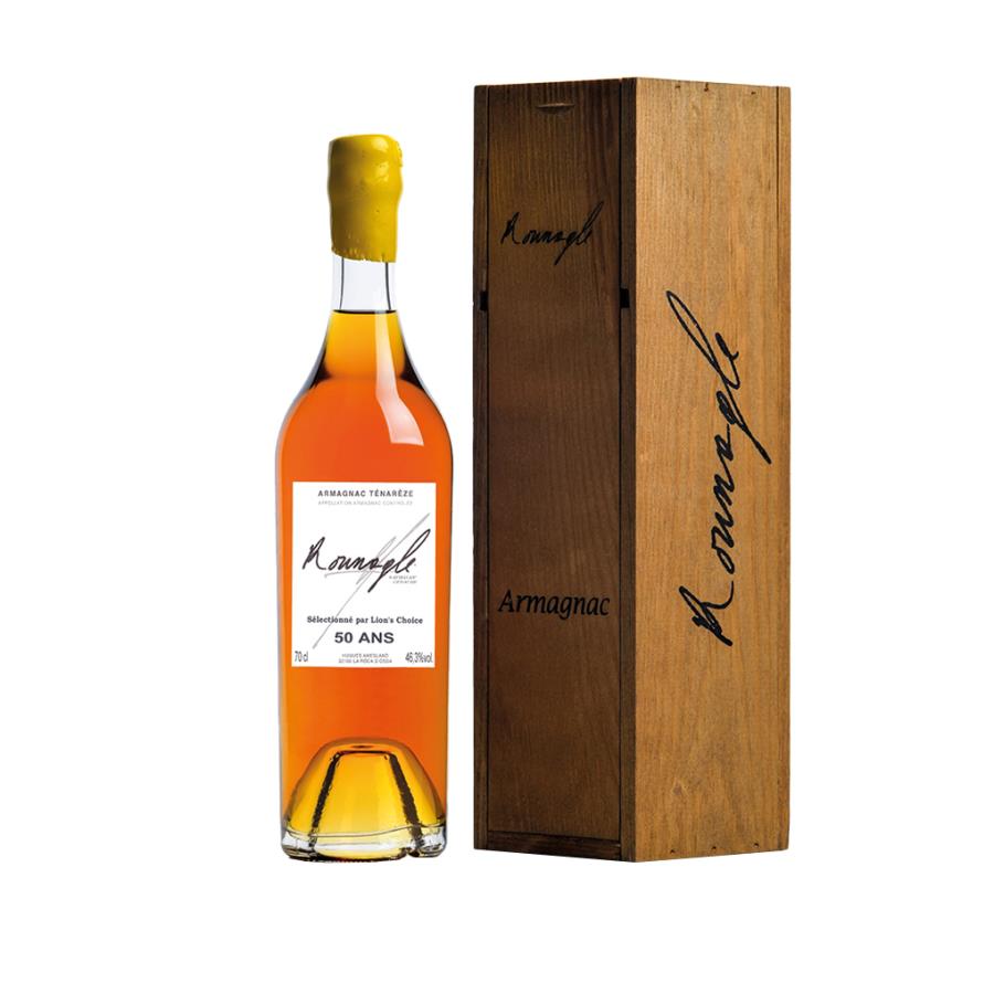 TIPOLOGIAAOC Armagnac Ténarèze ZONA PRODUTTIVALe Rounagle DISTILLAZIONEContinua VITIGNOUgni Blanc, Colombard, Folle Blanche, Baco Blanc COLORENoce con riflessi mogano. PROFUMOAl naso, aroma intenso di legno antico con note leggermente vanigliate SAPOREIn bocca si presenta molto ampio con un buon sentore di legno antico. Persistenza aromatica NOTEUn Armagnac che merita una degustazione lenta, degna del suo invecchiamento e della pazienza del Maître de chais nell’elaborare questo meraviglioso Elisir. INVECCHIAMENTOMinimo 50 anni in botti di quercia.