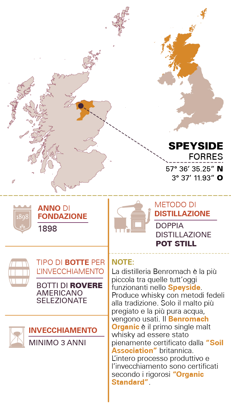 ZONA PRODUTTIVAForres MATERIA PRIMAOrzo, acqua e lievito DISTILLAZIONEUtilizzando i migliori ingredienti naturali, i distillatori coordinano ogni singolo momento del processo di distillazione; ogni botte viene riempita, pesata e marchiata manualmente prima di essere riposta per molti anni nei tradizionali magazzini “dunnage” per la fase di maturazione. COLOREDorato PROFUMOAl naso emergono dolci aromi di vaniglia uniti a cereali tostati e fiori di agrumi. SAPOREAl palato è morbido e pepato, con vaniglia, menta piperita fresca e rovere sullo sfondo. INVECCHIAMENTO10 anni in botti vergini di rovere americano trattate con un processo di essiccatura all’aria aperta.