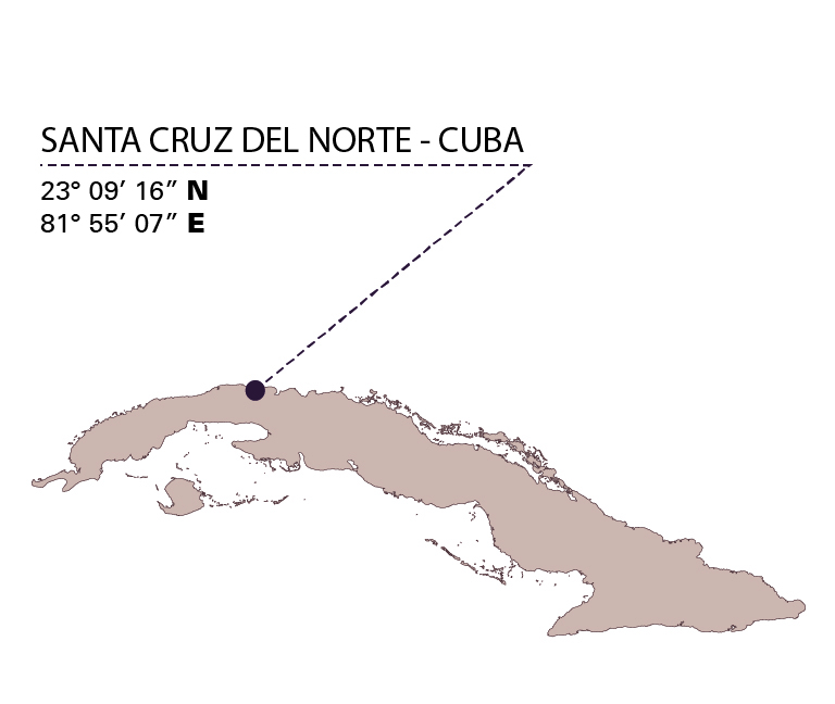 TIPOLOGIADOP Cuba Ron ZONA PRODUTTIVASanta Cruz del Norte MATERIA PRIMA100% canna da zucchero Cubana. Si utilizza la melassa, coltivata e lavorata a Cuba DISTILLAZIONEColonna continua, di fabbricazione esclusiva e brevettata COLOREAmbrato leggero PROFUMOAl naso ricorda la canna da zucchero e ha ricordi dolci di frutta. Continua con sfumature di legno e vaniglia. SAPOREAl palato ha una leggera dolcezza in equilibrio con una componente più amara. Emergono i sentori legati all’invecchiamento che si sviluppano con un sorso caldo e avvolgente.Il finale è lungo e pieno. INVECCHIAMENTOL’invecchiamento in botti di rovere bianco americano avviene in 3 fasi: la prima a gradazione piena 74%/76%, la seconda tra il 40% e il 60% di alcol, la terza dopo i blend effettuati dal Primer Maestro Ronero