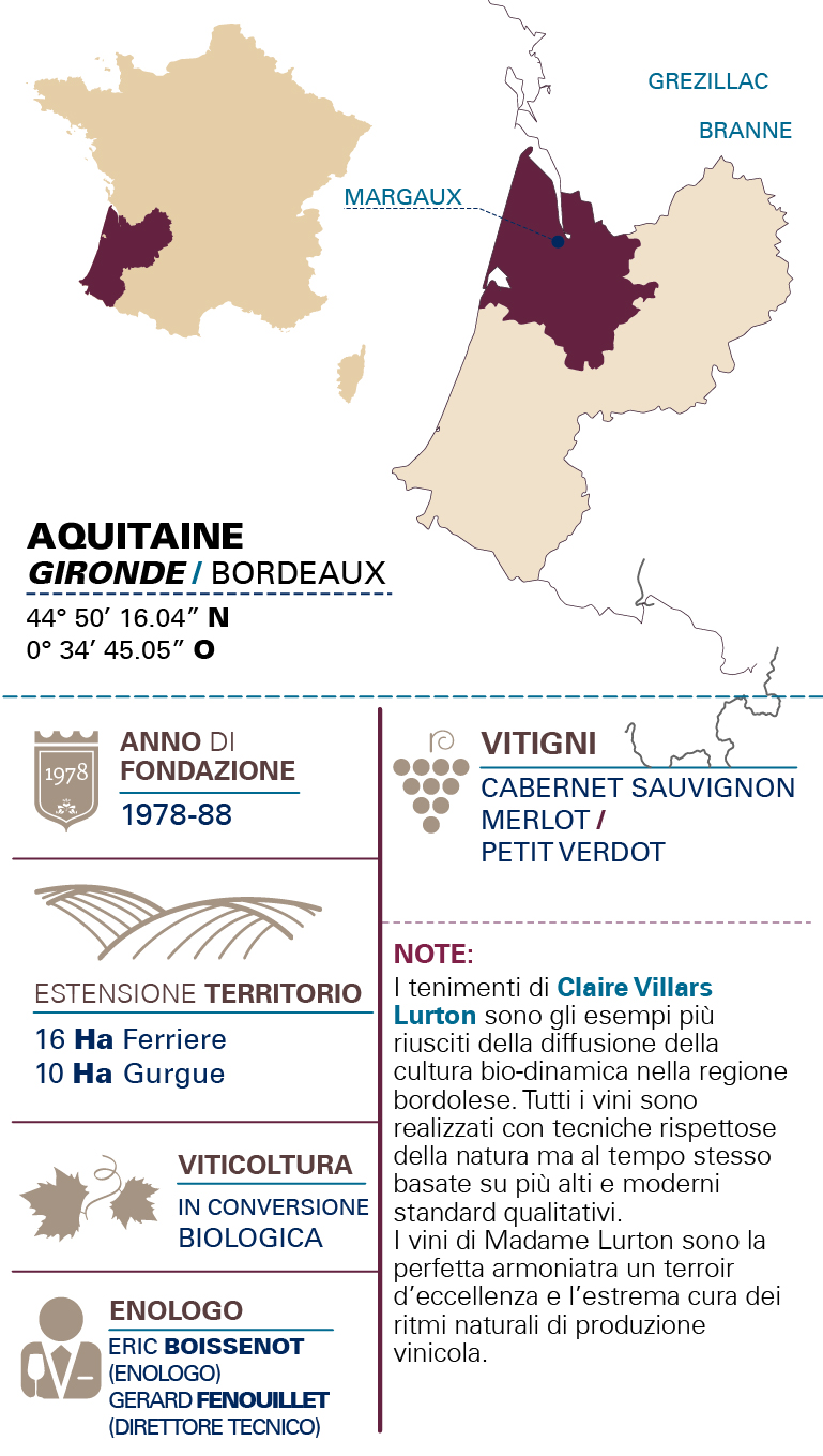 TIPOLOGIAAOC Margaux ZONA PRODUTTIVAMargaux VITIGNO52% Cabernet Sauvignon, 45% Merlot, 3% Petit Verdot TIPOLOGIA DEL TERRENOSuolo ghiaioso e sabbioso. ETÀ DEI VIGNETI25 anni VINIFICAZIONEVinificazione in vasche inox e calcestruzzo termoregolate. COLORERosso granato. PROFUMOIl naso ha una bella energia aromatica. Tabacco, liquirizia, frutta nera e spezie. SAPORELa bocca è carnosa e densa. L'annata ha molto carattere. Un vino fine con una bella struttura tannica. INVECCHIAMENTOAffinamento in barrique di rovere francese per 12 mesi, 20% di botti nuove.